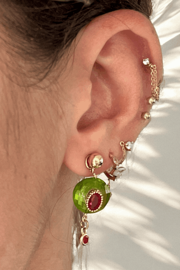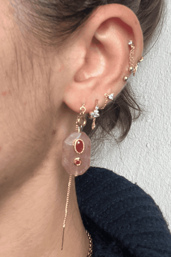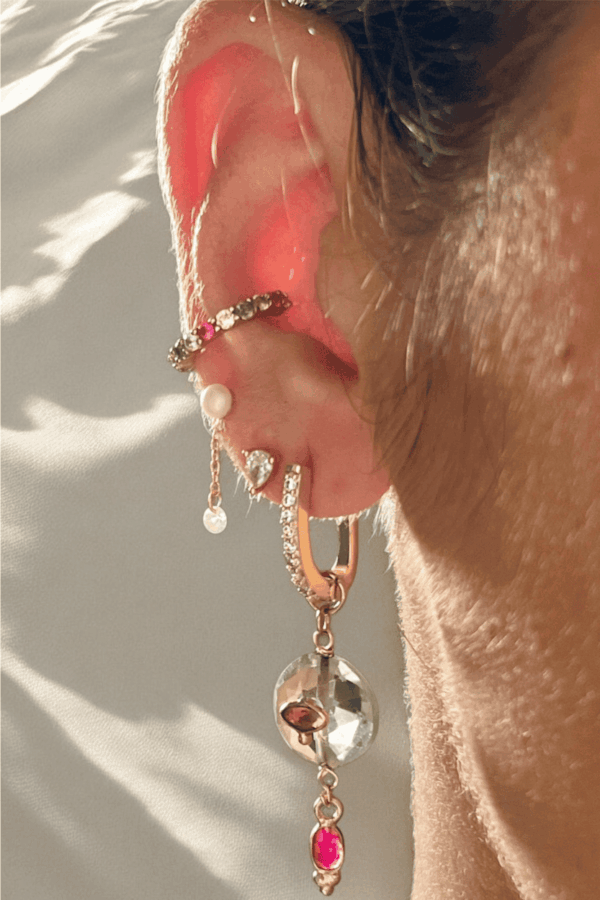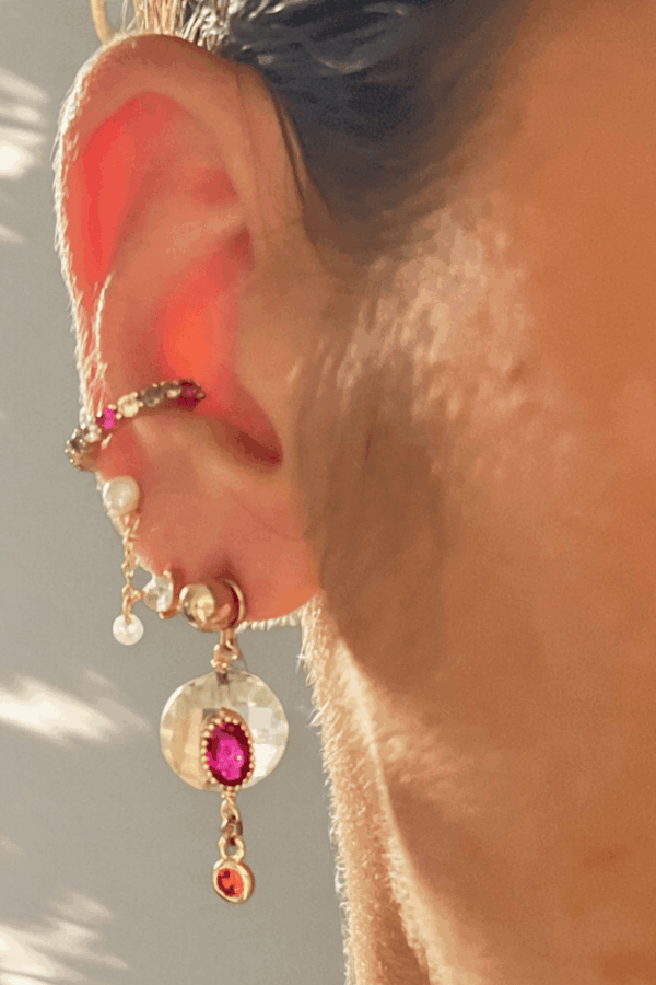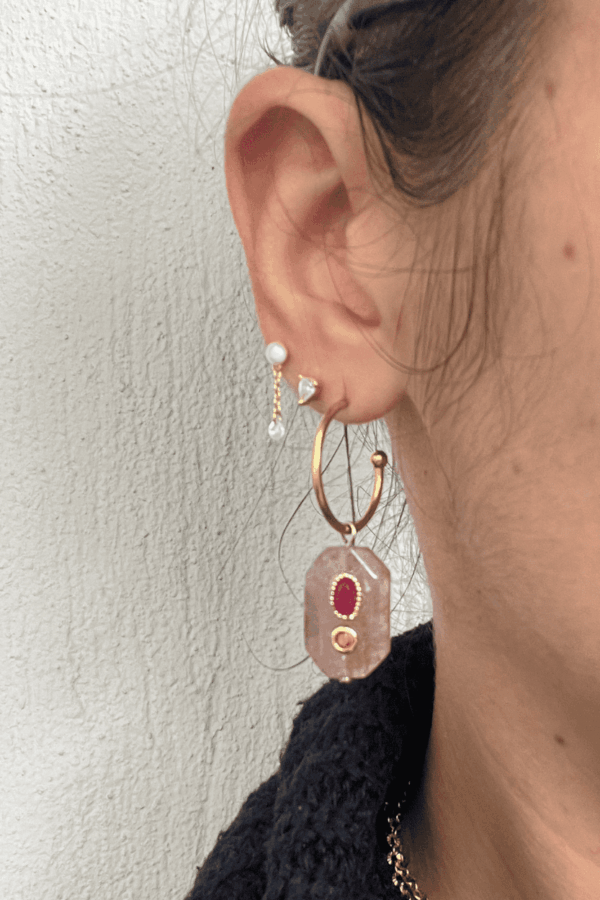 Bague LE CAPBoucles LE CAP rondes sur pierreBoucles LE CAP rondes portéesPuces LE CAP rubisPuces LE CAP portéesBague LE CAPBague LE CAP portéeBracelet LE CAP et sa bague LE CAP
