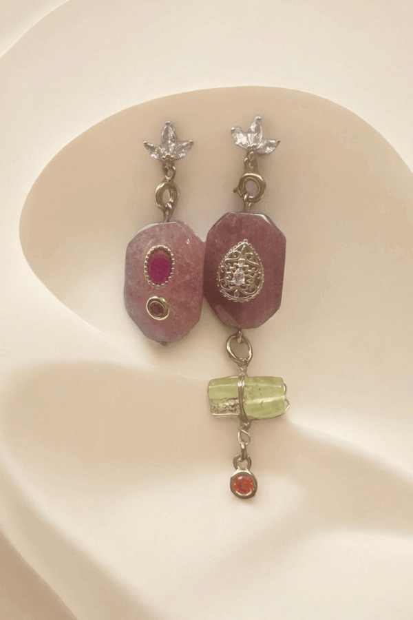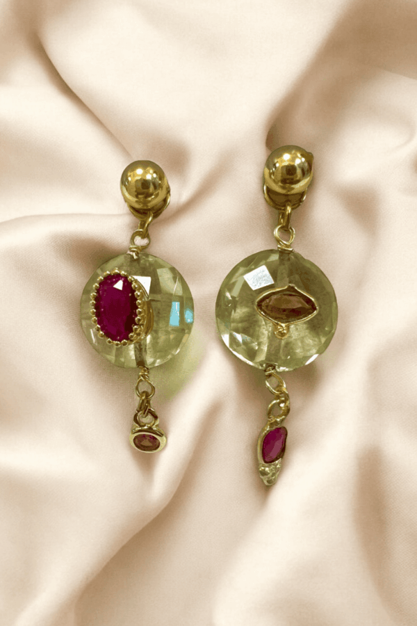 Boucles Riyad améthyste verte fermoirs dormeuses zircons sur rocheBoucles Riyad améthyste verte fermoirs dormeuses zircons sur roche